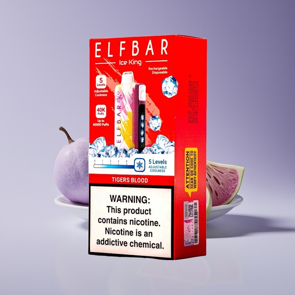 Philippines Wholesaler Elf Bar Ice King 40000 Puffs Tigers Blood 20ml 5% Nic Rechargeable 850mAh Dual Airflow LCD